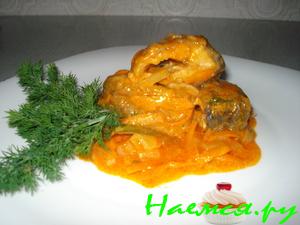 Рыбу помыть, очистить от чешуи, отрезать плавники и хвост, порезать на порционные куски, посолить и поставить в холодильник на 1 час.