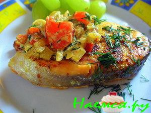 Рыбку обваляли в муке и на сковородку в разог.масло,обжарили с одной стороны 3-4 мин.,затем перевернули(ОЧЕНЬ АККУРАТНО)и огонь уменьш.На рыбку полили водки(немного) положили помятую морковь+лук,а сверху сметанки,накрыли крышкой на 5-6мин.,потом добавили сыр(натертый)и ещё на 2-3мин.Все готово!Можно кушать!