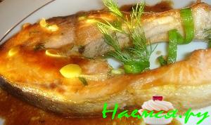 В конце жарки я вылила маринад с луком на рыбу и выпаривала 3 минуты.