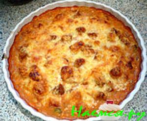 Выложить на смаз.оливк.маслом противень рыбу и кружочками порезанный картофель(как бы пол-противеня рыбы, пол-противеня картофеля.)