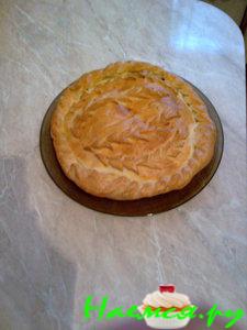 Готовим тесто: муку высыпать на стол, туда же порубить маргарин, яйцо, соль, сметана. Все перемешать. Если тесто слишком тугое добавить сметанки. Замотать в пищевую пленку и оставить. Займемся рыбой. Чир очистить от чешуи, выпотрошить, надрезать спинку возле кости, и помогая руками отделить от костей. Тесто разделить на две части, одна верх, другая низ. На тесто уложенное на противень ложим лук нарезанный кольцами /1 луковица/, сверху рис, затем укладываем рыбу, два филе валетиком, дальше снова лук, и накрываем тестом. Защипываем, затем по кругу заворачиваем косичкой, надрезаем и в духовку. Не забудьте присолить каждый слой, но не перестарайтесь.