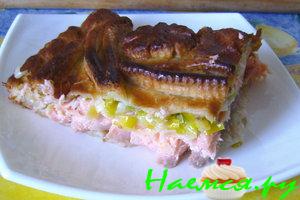 Пирог рыбный с паприкой, помидорами и моцареллой