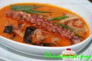 к тому моменту уже сварятся морские гады. Воду, в которой они варились, добавить к смеси лука, муки и сала - все перемешать венчиком, а самих гадов выложить на досочку и измельчить (иллюстрация)... Если кто любит более крупные элементы в супе, можно и не измельчать