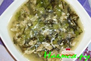 Затем тонкой струйкой влить размешанное яйцо и положить порезанный кубиками сыр.