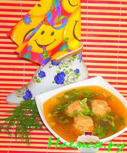 Бульон довести до кипения, положить горох и сельдерей. После того, как снова закипит, выкладывать фрикадельки. Как только они всплывут - суп готов.