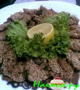 Вначале приготовила маринад: рыбный соевый соус смешала с половиной сока лимона (лайма), одним мелко нарезанным перцем чили (без семян), одной ст ложкой сахара и добавила 2 ст ложки очень горячей воды и рюмку врдки. В этом соусе 15 минут замариновала нарезанное ломтиками филе морской рыбки.