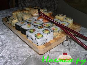 - Способ подачи. Суши подаются на специальном деревянном подносе или тарелке. Маки подаются на бамбуковом коврике или в коробке.