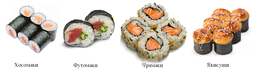 Существует несколько видов маки, которые классифицируются по размеру, направлению заворачивания и количеству ингредиентов в начинке. Вот некоторые из них: