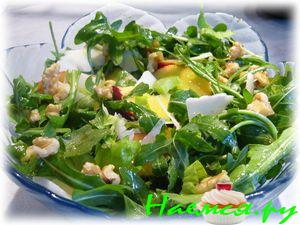 Салат из рукколы с нектаринами, фенхелем и перепелиными яйцами