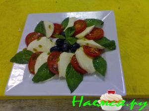 Приправить салат солью и свежемолотым черным перцем, полить оливковым маслом.