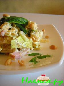 Лапшу замочить в кипятке, когда разбухнет, воду слить.