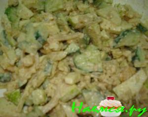 добавляем огурцы и сыр с соусом