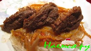 Грудку маринуем соев.соусом,медом,тимьяном,размарином и чесноком 20 мин.Чеснок раздавить кончиком ножа.Затем жарить с двух сторон до средней прожарки(медиум).