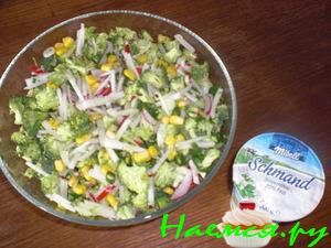 Броколи варить в посоленом кипятке ок. 5 мин. Дать стечь воде и остудить.