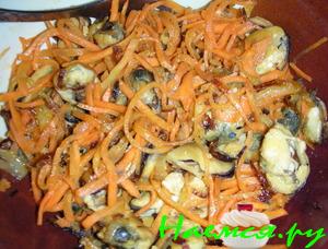 Ветчину порезать кубиками, добавить кукурузу, корейскую морковь и сухарики.