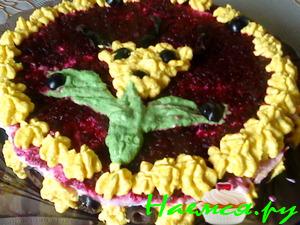 7сл)тёртая сырая морковь,весь верх промазать майонезом,посыпать рубленной зеленью.