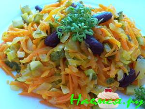 Добавляем фасоль к моркови с луком,перемешиваем и убираем с огня. Даём постоять всему этому под крышкой до остывания.