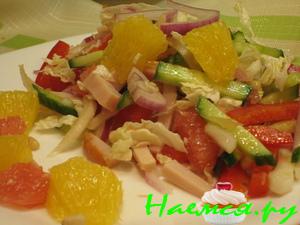 Капусту перец и морковь перемешать посолить добавить мелко порубленный грецкий орех и выложить на блюдо