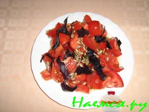 Помидоры нарезать крупно+семечки+масло.