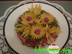 Стакан убираем,а в серединку кладем замаринованную луковицу.
