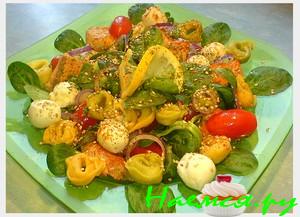 Тортеллини отварить в подсоленной воде, откинуть через друшлaг и остудить.