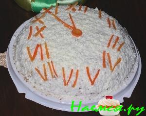 Так как сделала в вытянутом блюде продуты разделила на двое (орехи на 3 части)и все четыре перечисленных выше слоя добавила заново сверху после сыра.