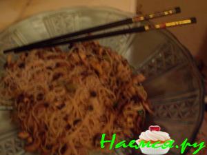 Полить все соевым соусом Кикоман и украсить зеленью.