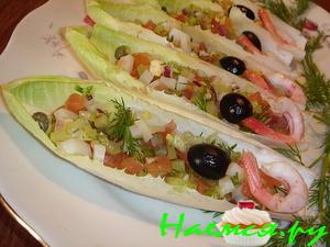 Салат-коктейль из цикория и черного винограда