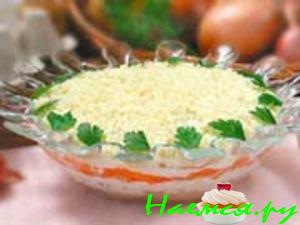 Яйца нарезать кружочками, положить на лук, залить майонезом, можно присыпать перцем.