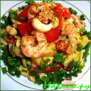 7. Аккуратно выложить салат в кожуру из под авокадо и украсть креветками. Готово! Приятного аппетита!