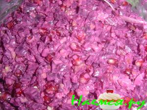 Добавляем гранат и бруснику,соль и сахар по вкусу.