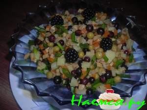Всё укладываем слоями и каждый слой пропитываем тонким слоем майонеза *курица-огурцы-грибы-яйцо-орехи-брусника