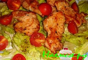 для маринада: по 1ст.л. светлого бальзамического уксуса или белого сухого вина, соевого соуса, оливкового масла, еще немного соли и перца.