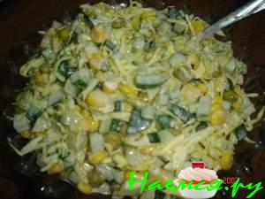 Свежие огурцы, крабовые палочки – нарезать кубиками. Яйца натереть