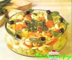 Полить майонезом. (Для любителей здоровой пищи, можно заменить майонез на густую сметану)