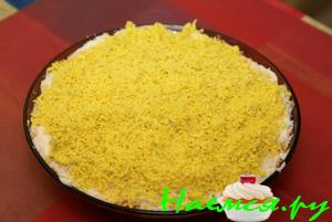 4 слой - сыр на терку , майонез.