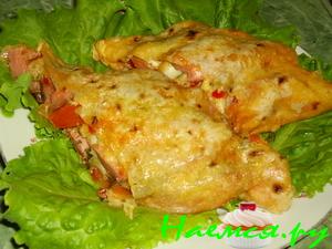 нашинковать курицу, лук и ветчину (карбонат) соломкой, затем обжарить их на сковороде
