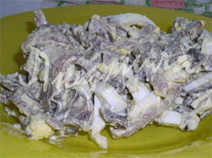 Салат мужской с языком и грибами