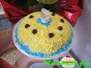 Вишню залить коньяком и оставить на несколько часов.Испечь шоколадный бисквит.Для крема слегка обжарить муку до бледно розового цвета.Из молока сахара и яиц с мукой сварить крем.Остудить.Взбить с маслом и добавить какао.У бисквита сверху отрезать корж.У оставшегося бисквита достать серединку.Вишню достать из коньяка.Смешать серединку бисквита с кремом и вишней.Заполнить бисквит начинкой и закрыть коржом.Сверху залить глазурью.