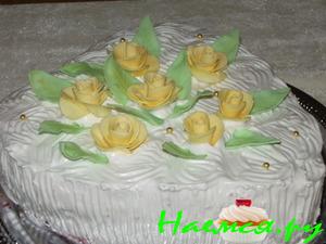 В форму в которой выпекался бисквит, положить 1 корж вылить мусс и накрыть 2 коржом. Поставить в холодильник на часа два. Достать с холодильника и украсить по желанию.