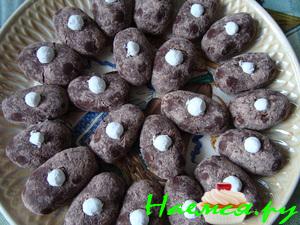 Посыпать "Картошку" какао и сделать расточки, соединив сахар и масло (я выкладываю с кочика ножа).