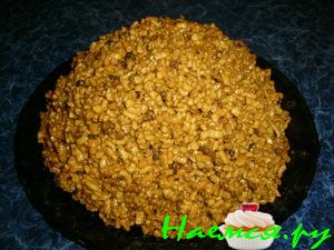 Замесить тесто, пропустить через мясорубку, испечь печение. Дать остыть, поломать на меленькие кусочки, смешать с кремом, выложить на блюдо горкой и посыпать все шоколадной стружкой.