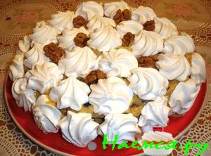 Взбиваем белки с лимон.кис-ой,постепенно вливая горячий сироп с желатином,взбиваем 10мин.