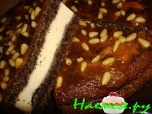 Добавить сливки и бренди, хорошо перемешать и залить торт.