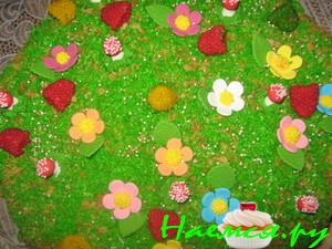 # Всё вымешать,поделить на коржи(получается 7-9к.) и выпекать в раскалённой духовке.