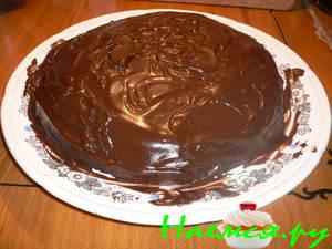 нанести крем,с вверху выложить вишню,опять крем и накрыть другим коржом.