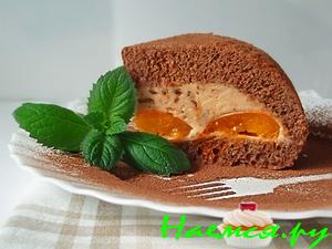 Приготовить бисквит. Отделяем белки от желтков. Растираем желтки с сахаром до его полного растворения. Отдельно взбиваем белки в пену, добавив щепоточку соли. Раскалываем шоколад на мааааааленькие кусочки(или трем на крупной терке). Просеем муку с крахмалом. Добавляем в желтки муку и 1/3 взбитых белков. Аккуратно, движениями снизу вверх, перемешиваем. Добавляем остальные белки, перемешиваем аккуратно, чтобы белки не осели. Добавляем колотый шоколад. Берем разъемную форму, смазываем дно формы сливочным маслом, выливаем наше тесто и ставим в духовку на 40 мин при t 220 С. Даем остыть.