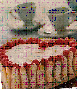 Я, как и многие,удивляюсь Наташиной фантазии при выпекании тортов.Вот и на этот раз без её помощи не обошлась.Ещё раз порадовалась тому,что есть интернет,есть аська и есть Наташа,которая всё покажет и объяснит.Молоко,воду масло,соль смешать,довести до кипения,всыпать муку и интенсивно перемешивать,не снимая с огня,пока тесто не станет однородной, эластичной массой.Пока тесто будет остывать,делаем крем.Малину и сахар смешать,довести до кипения и процедить .Желатин замочить на 10 мин в холодной воде,затем подогреть до полного растворения.Малиновое желе соединить с творогом,затем с растопленным желатином,когда масса начнёт подстывать добавить взбитые сливки.В остывшее тесто вбиваем по одному 4 яйца.Тесто делим на 7 частей.Каждую часть намазываем на бумагу очень тонким слоем.Диаметром примерно 26 см.Выпекаем 15 мин. при темп.180 гр.Остывшие коржи смазываем готовым кремом.Украшаем тем ,что имеется под рукой,у меня были абрикосы,малина и кокосовая стружка.Готово!