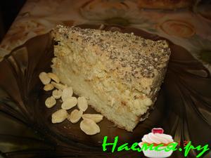 на охл. корж орехи, смесь и выпекать 30-35мин. Охладить и аккуратно вынуть из формы.