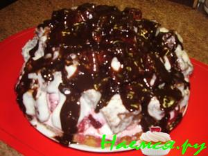 выпекаем "темный" корж, разрезаем на кубики, обмакиваем в крем, выкладываем горкой